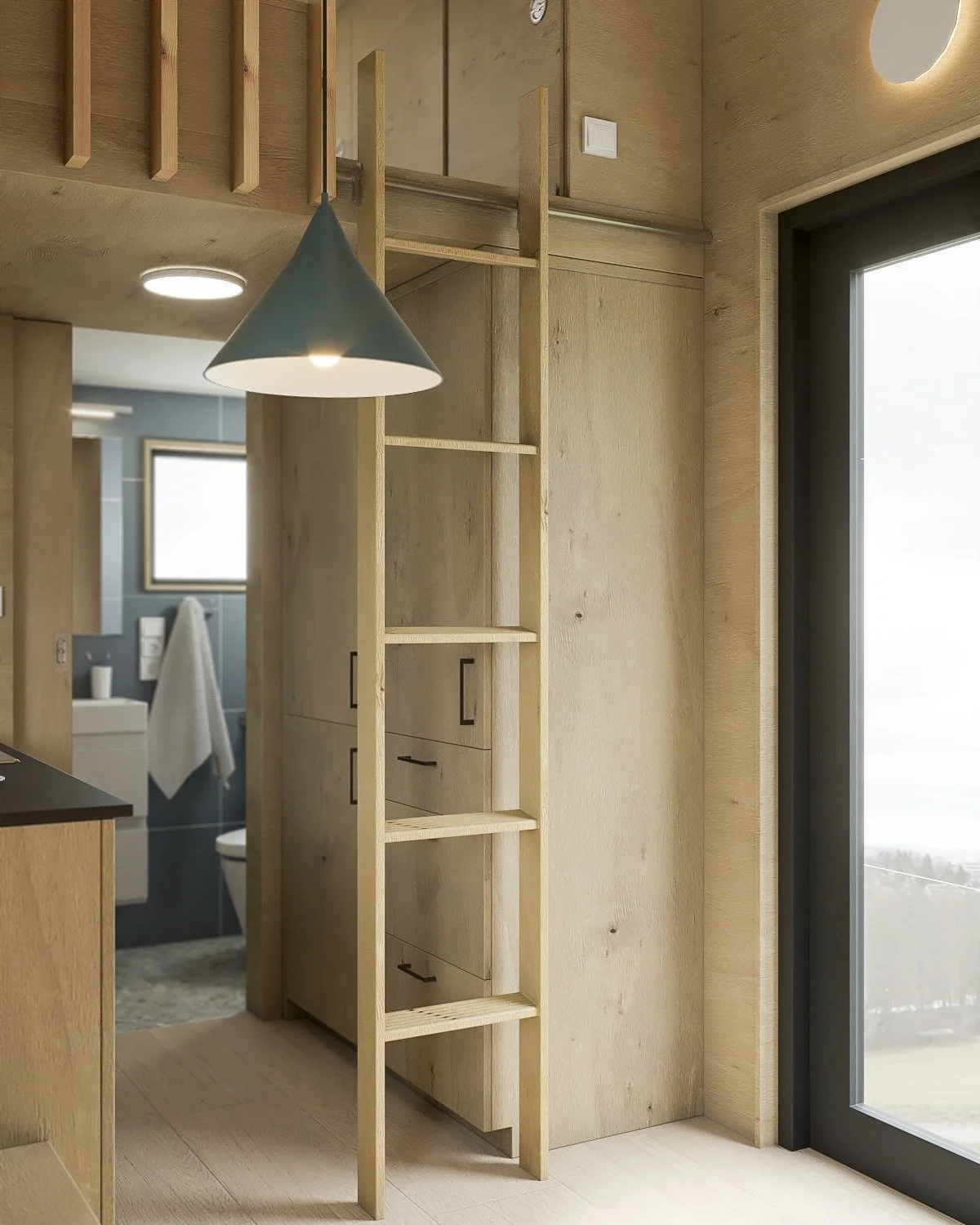 TY er et mikrohus som kombinerer romfølelse og fleksibilitet. To hemser, en sovesofa og et kompakt kjøkken gir opptil fem sengeplasser. Håndlagde møbler fra OWN Studio og energiløsninger som sikrer helårskomfort gjør huset egnet som bolig, anneks eller fritidshus.
